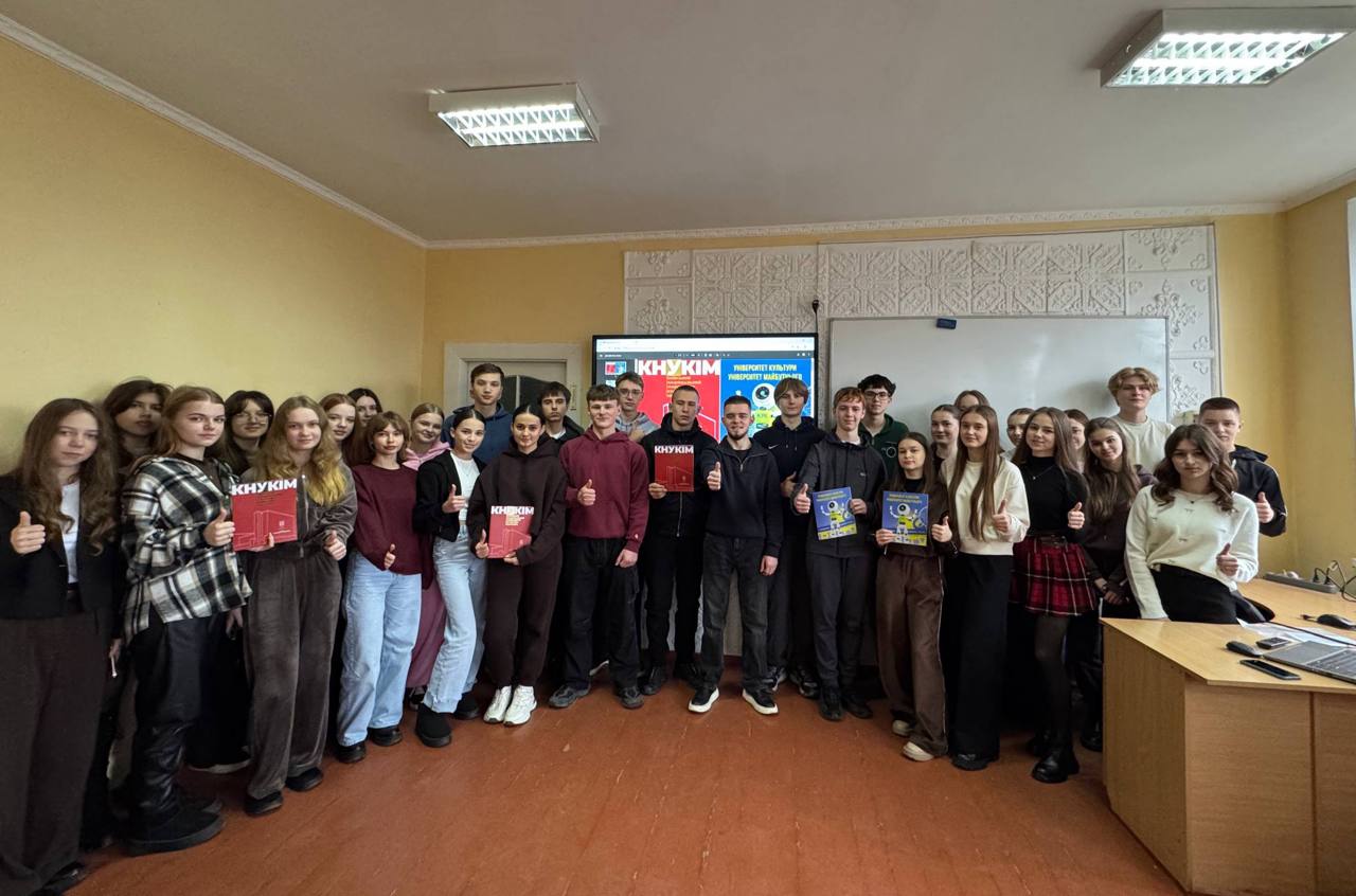 Сьогодні учні 11-х класів поспілкувалися з випускником нашого ліцею, працівником Київського університету культури Олександром Жабчиком. Говорили про вибір професії, сучасні можливості освіти, творчі й професійні перспективи у сфері культури, як знайти себе у майбутній справі. Дякуємо Олександру за мотивацію та щирий діалог!