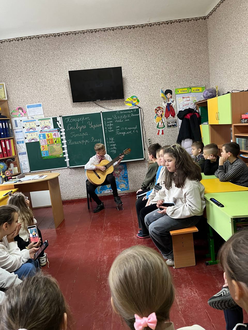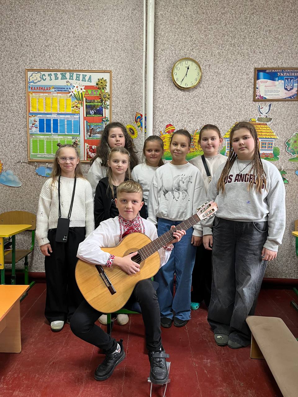 До учнів 3 та 4 класів завітав вихованець музичної школи Ничипорук Влад, який зачарував дітей своєю майстерною грою на гітарі. Під час виступу Влад виконав кілька мелодій різних жанрів, а вчителька Надія Степанівна розповіла школярам про інструмент, його виникнення та популярність. Діти із захопленням слухали виступ підтримуючи юного музиканта гучними оплесками.